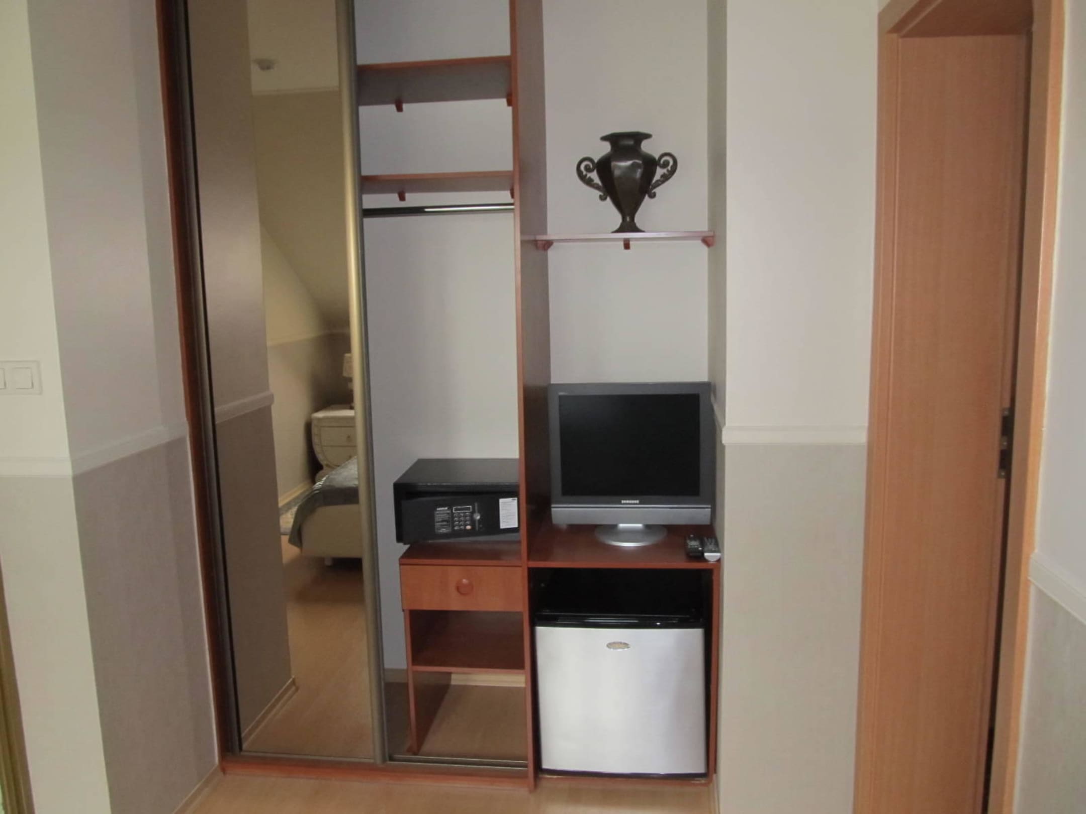 hier kostenlos der Safe und die Minibar; wer will kann auch im Schlafzimmer fernsehen