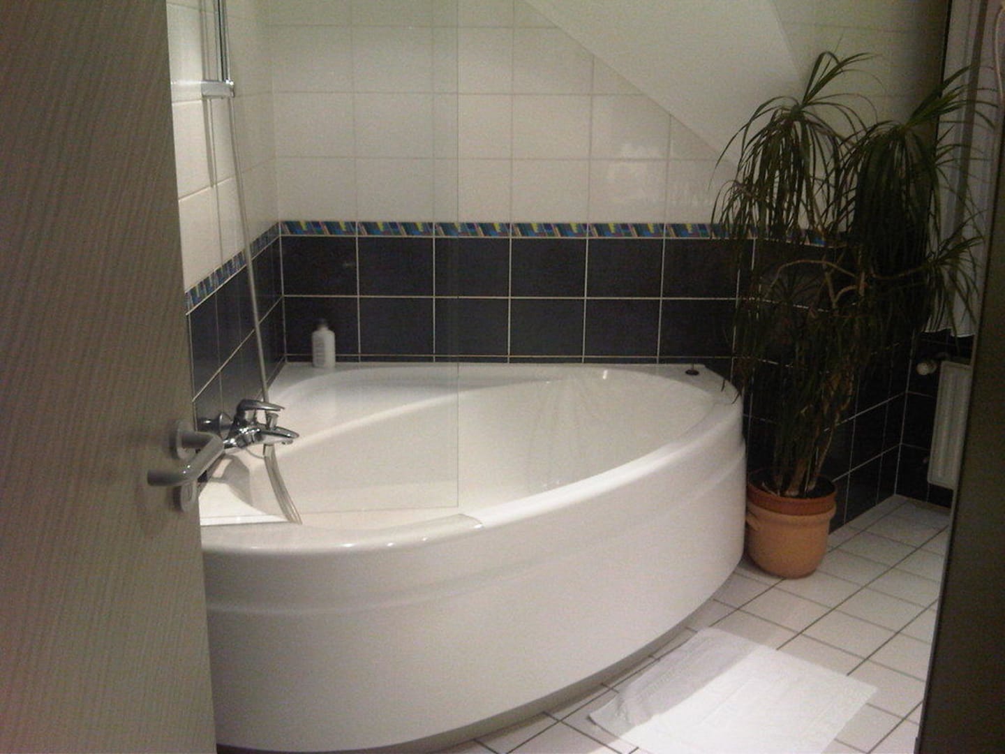 große Eckbadewanne mit Dusche