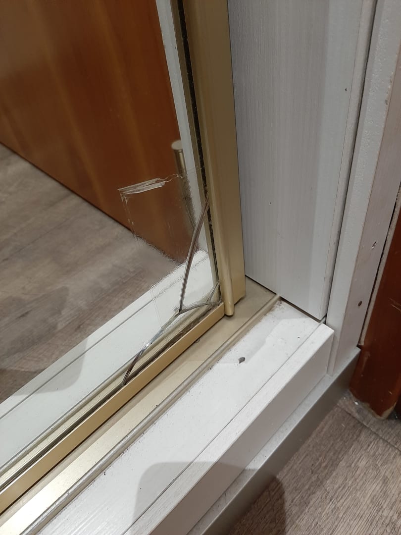 Mit Tesafilm geklebter Spiegel am Schrank