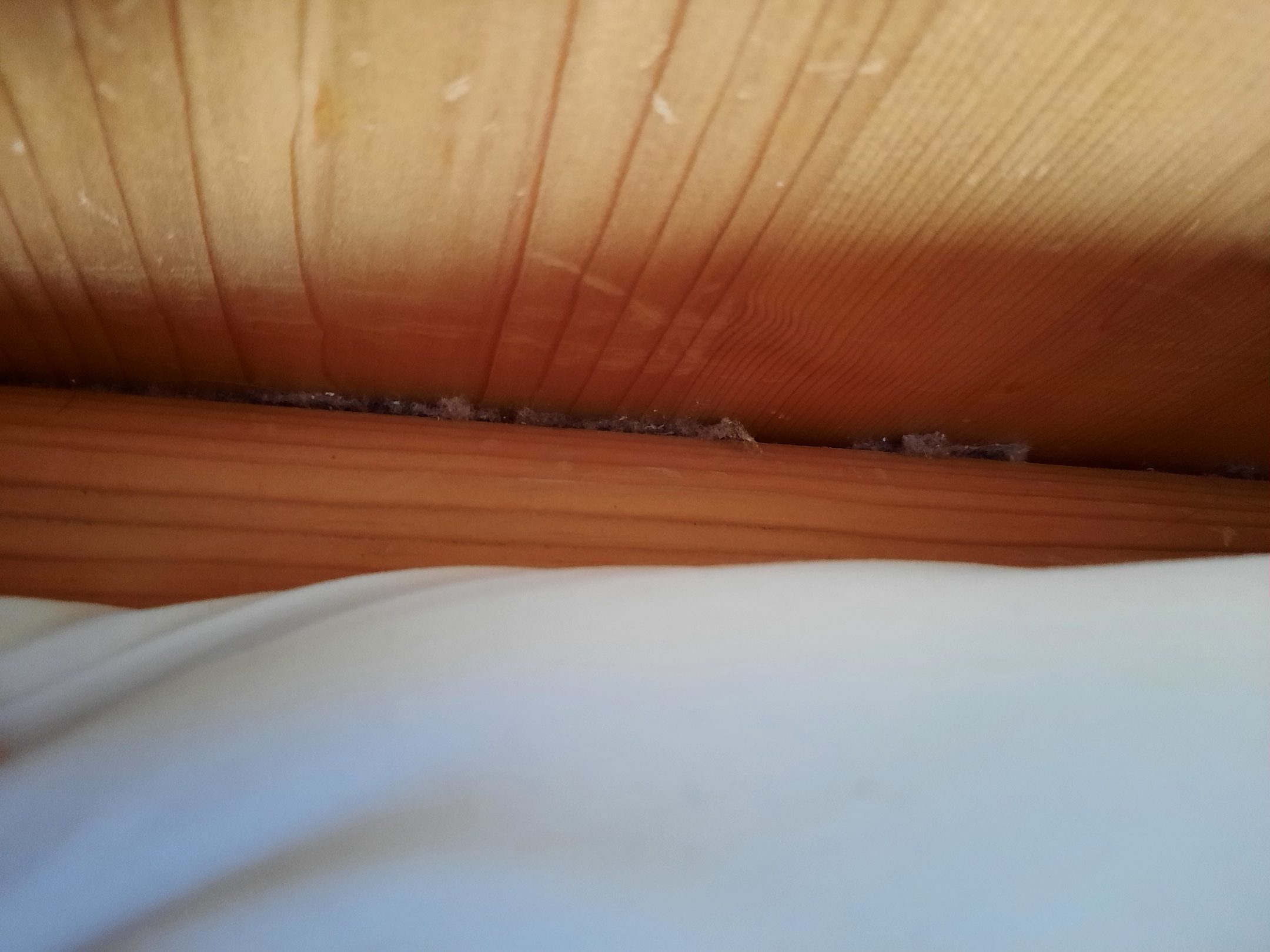 Schmutz beim Bett neben dem Kopfpolster