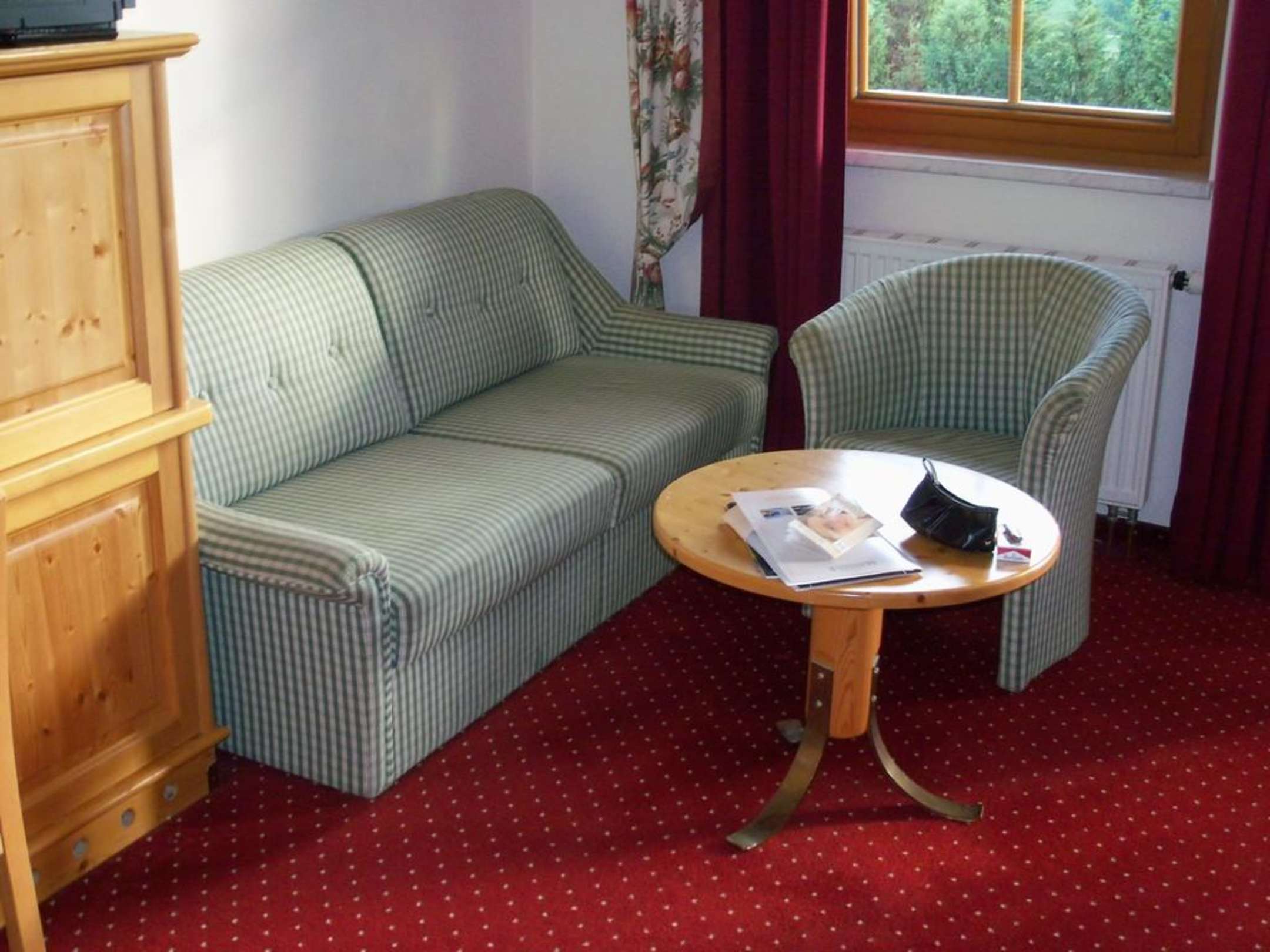SitzgruppeSitzgruppe im Superior-Zimmer: Zweiter Stuhl fehlt, Fernseher nur vom Bett aus sichtbar, nicht von der Couch aus