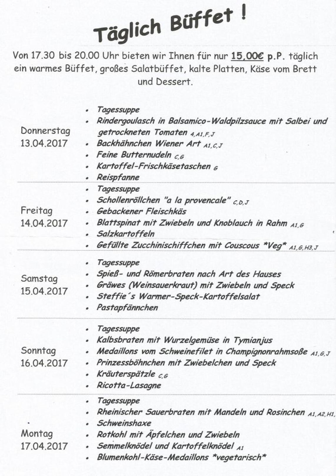 unsere Speisekarte - ein Leckerbissen !