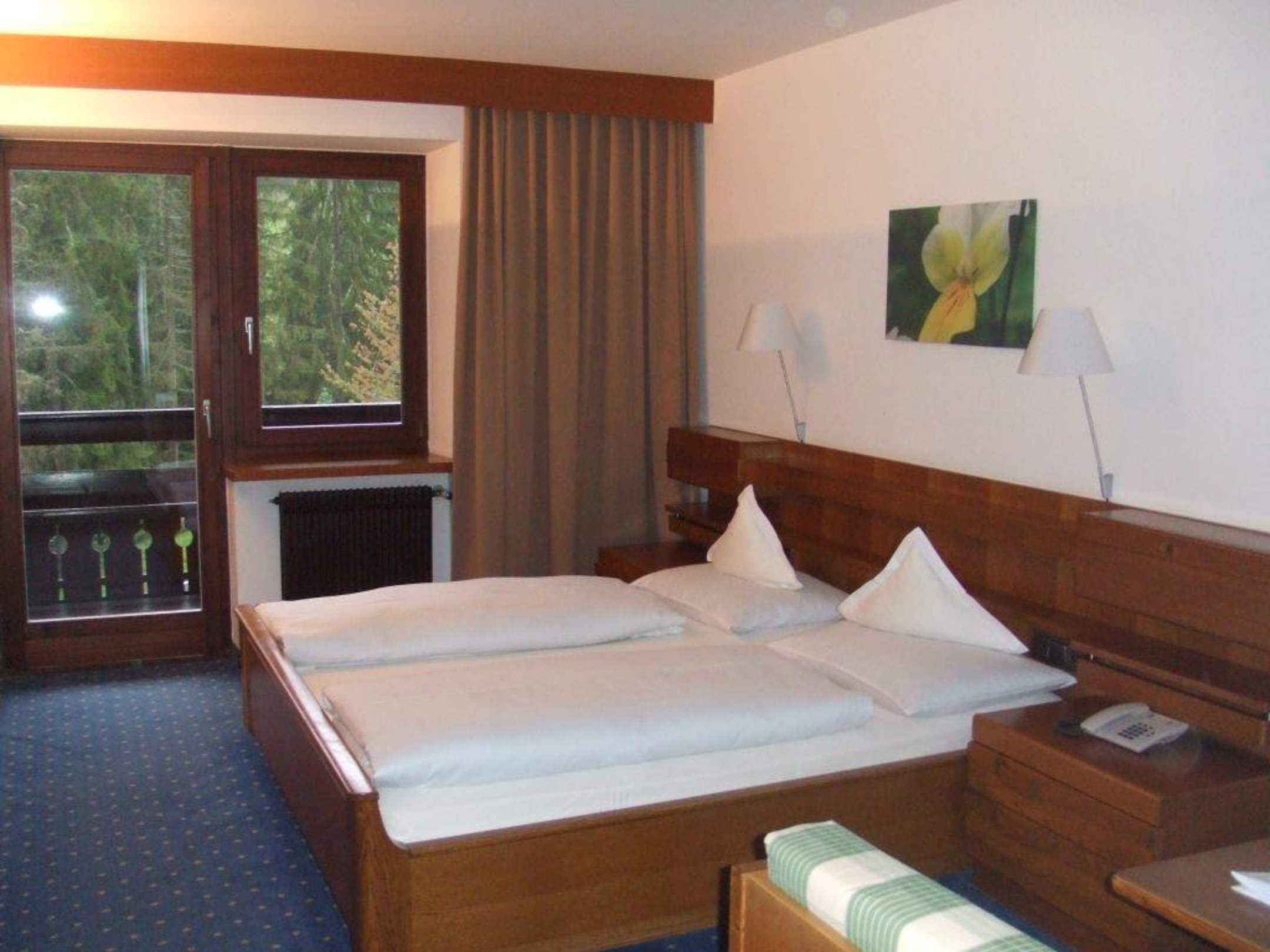 Zimmer im Hotel MühlwaldTapeten, Farbe und Leuchten sind neu, Möbel sind ok, aber bereits in die Jahre gekommern.