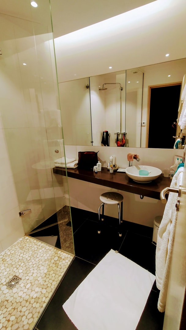 gut ausgestattetes Bad, mit ebener Dusche