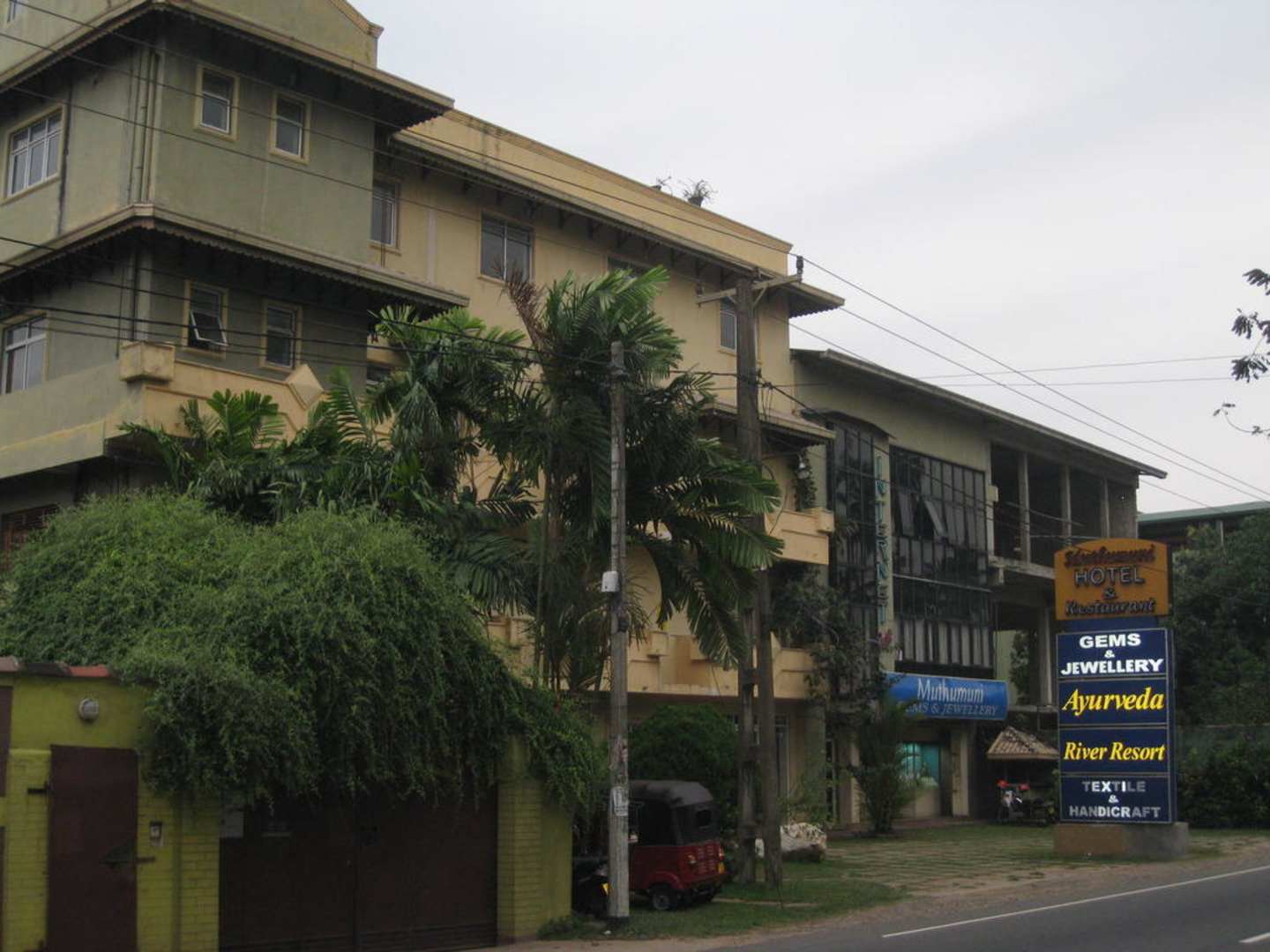 Aussenansicht von der Galle RoadDas Hotel ist direkt an der stark befahrenen Galle Road (Hauptverbindung Nord-Süd) der Insel gelegen.