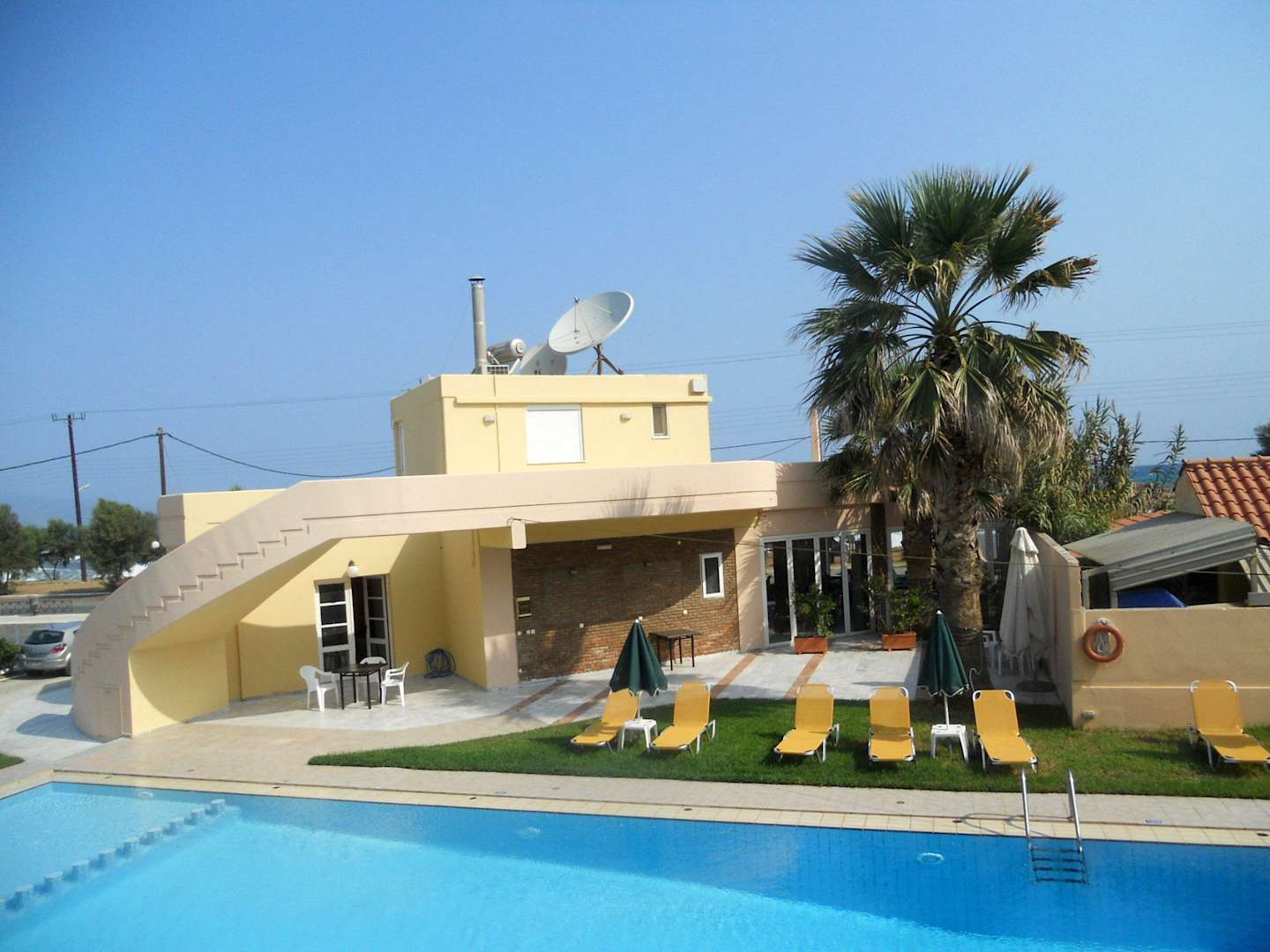 Basen i leżaki przy basenie