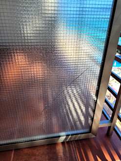 Balkontrenner mit uraltem Drahtgitterglas und deutlichem Riss
