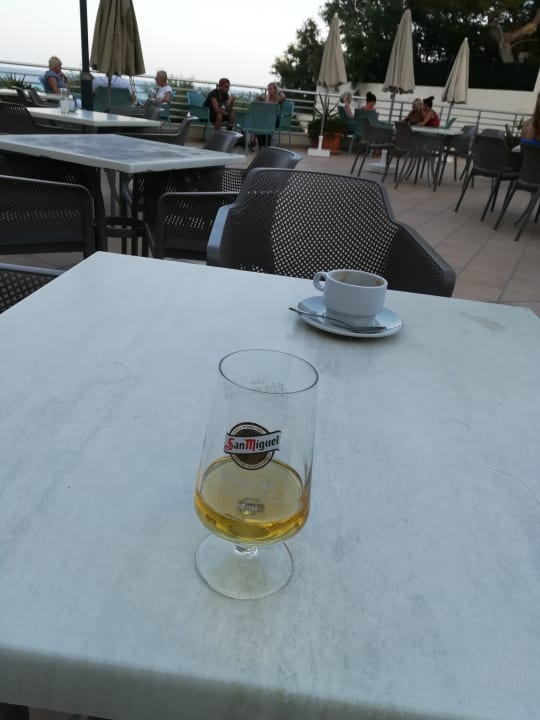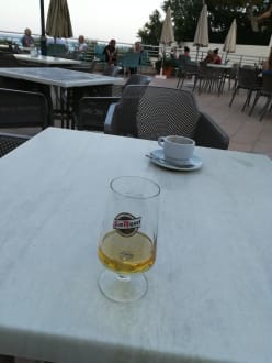 Die Terrasse, auf der auch das Abendprogramm stattfand. Es gab viele Tische, doch wer das Abendprogramm im sitzen mitverfolgen wollte, musste ab 21 Uhr einen Tisch gesucht haben.