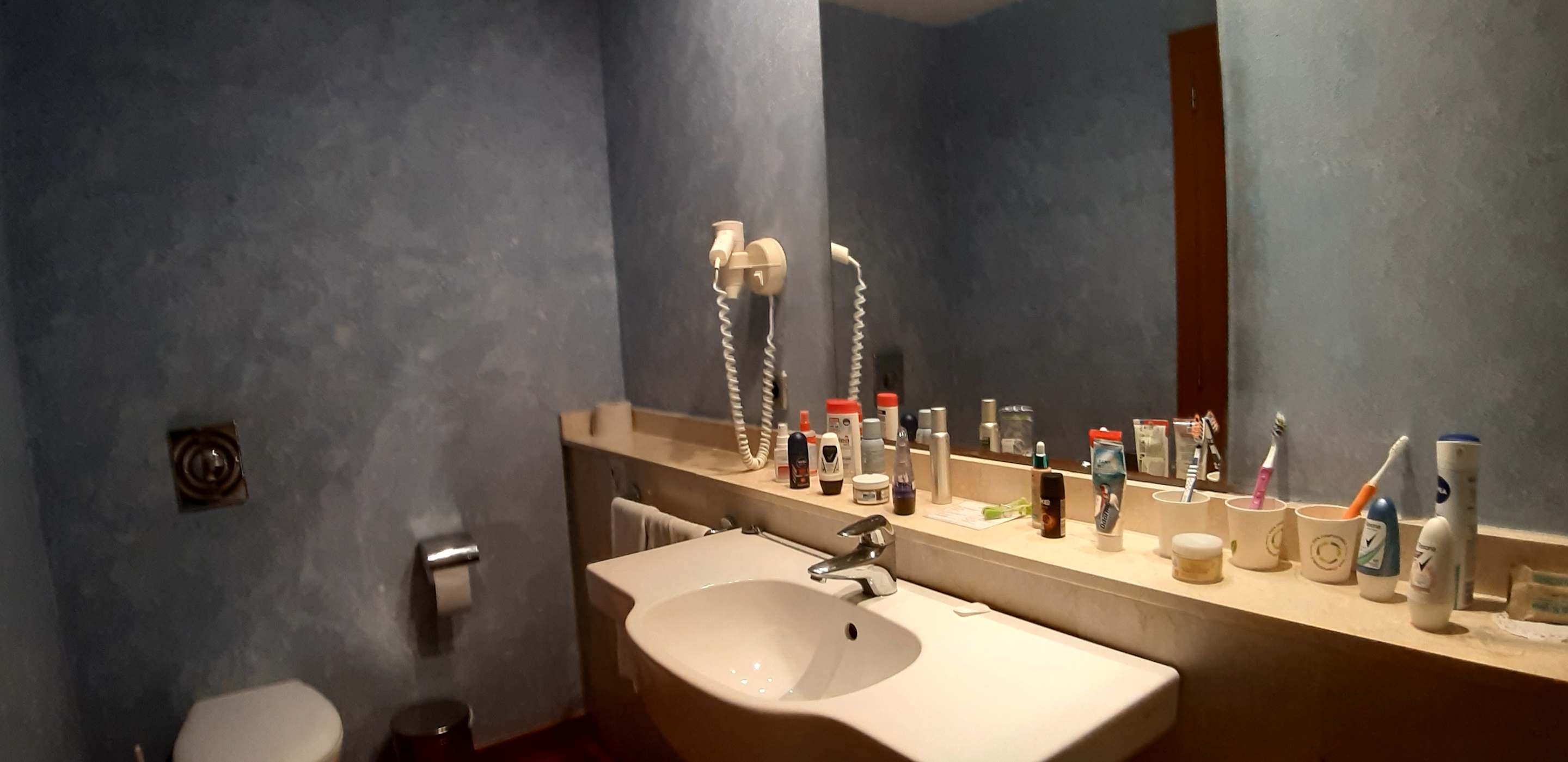 Bad mit großem Spiegel und Föhn