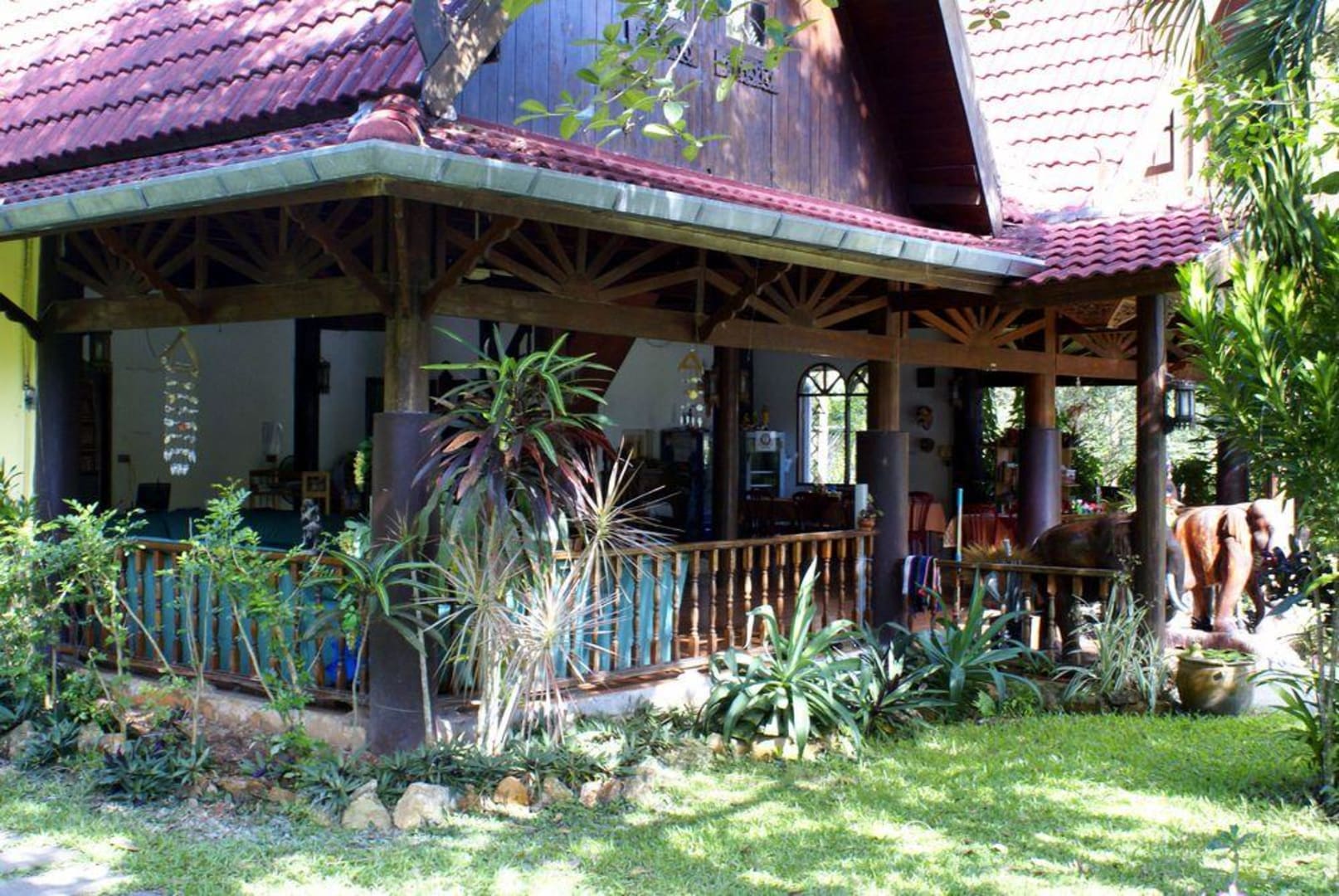 Na-Thai Resort - HaupthausUnten Restaurant, gemütliche Plauschecke, Internet... Oben die Bambussuiten mit riesiger Dachterrasse ganz intim nach hinten zum Garten hinaus.