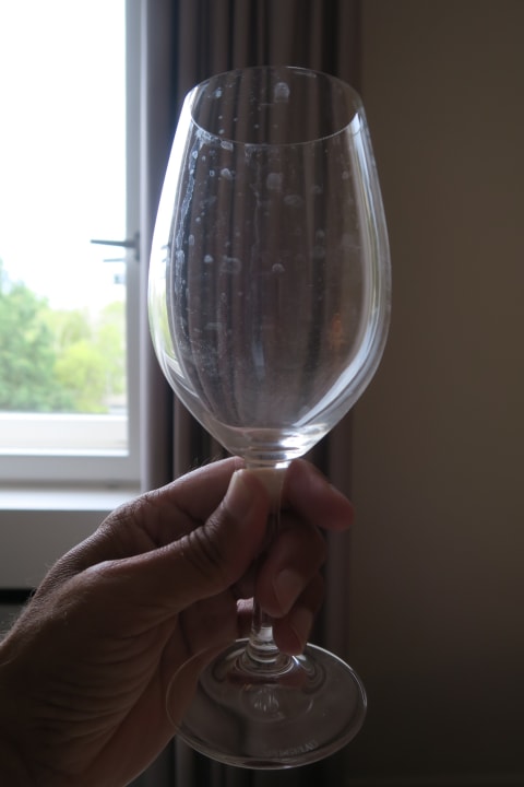 Erschreckend schmutziges Glas aus der Minibar