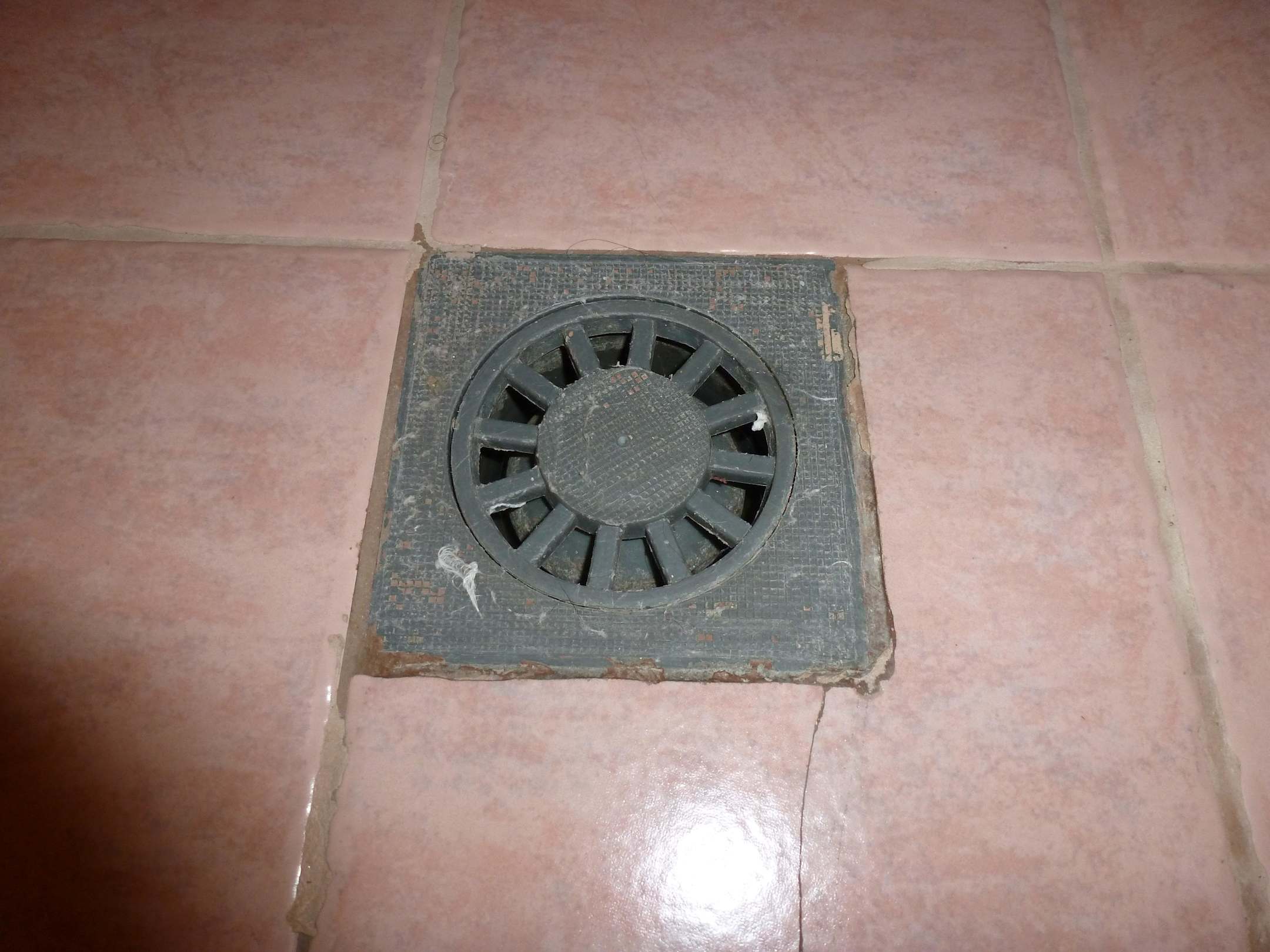 Dreckiger Abfluss mitten im Badezimmerboden