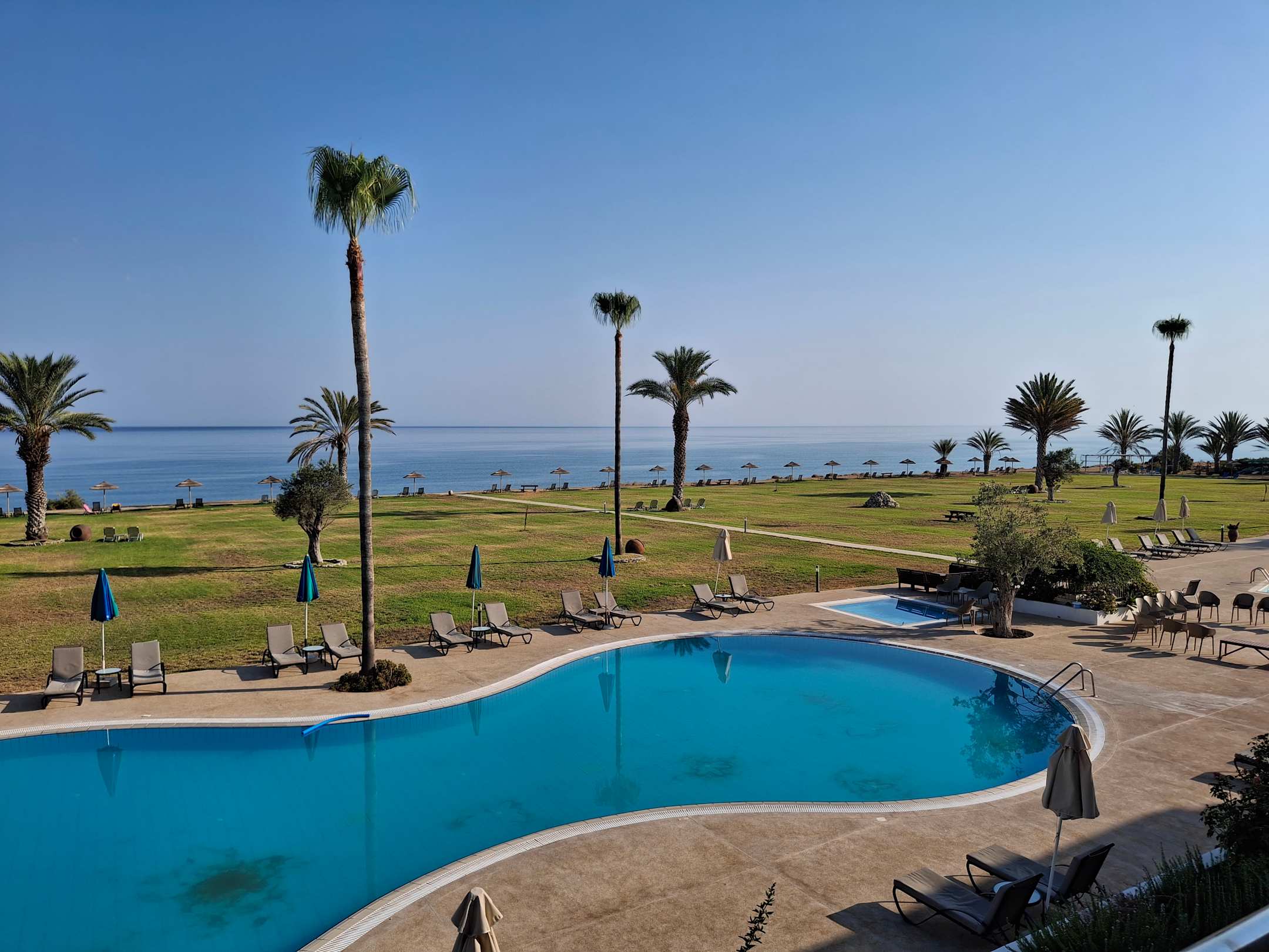 Unser Blick vom Balkon auf's Meer und Pool
