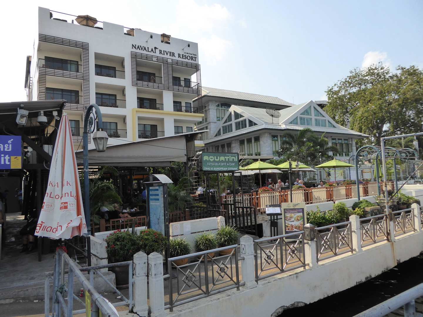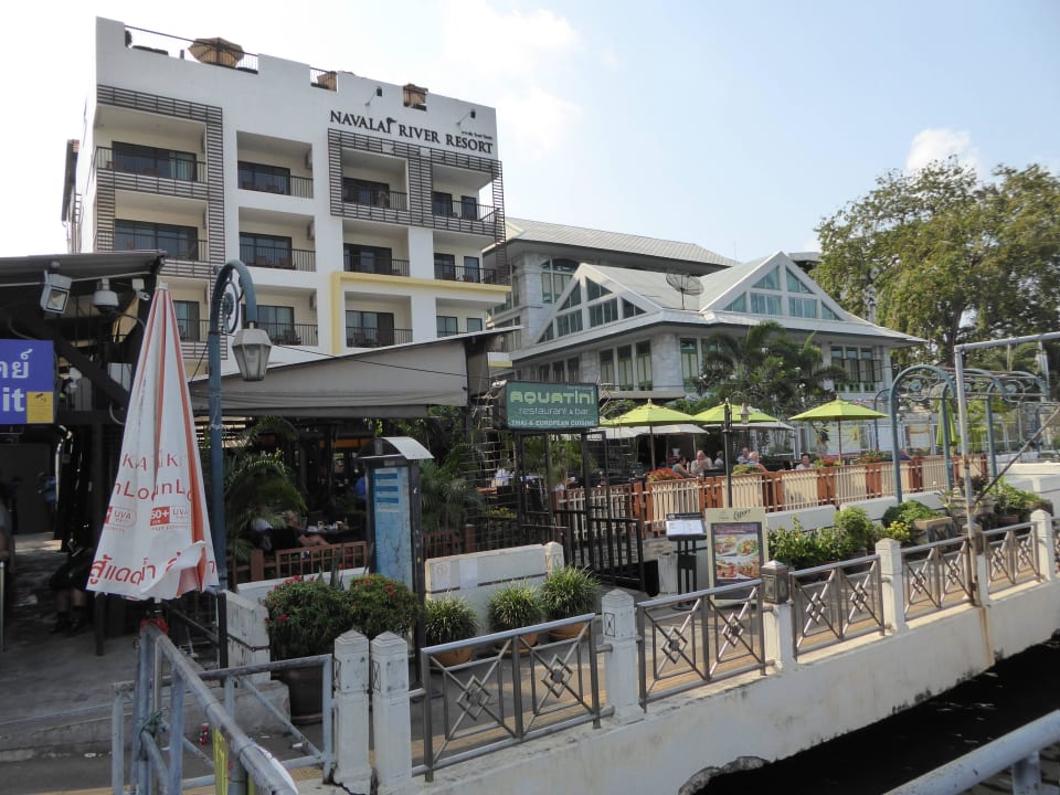 Blick auf das Hotel vom Fluss aus