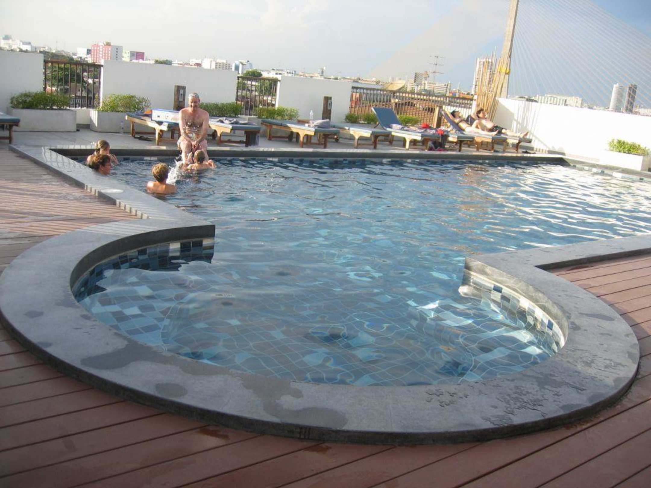 Pool auf der DachterrasseBadetücher sind kostenlos auszuleihen, leider wird der Pool sehr pünktlich um 18 Uhr geschlossen.