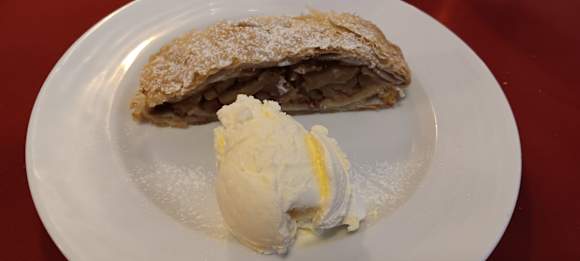Nachtisch Apfelstrudel mit Vanilleeis