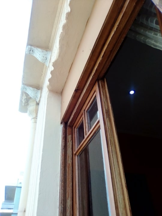 Die Türen sind sehr alt. Es gibt einen schönen Stuck um das Fenster.
