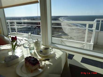 Kaffe und Kuchen im Cafe-Panorama (19. Etage), toller Blick westwärts den Strand entlang