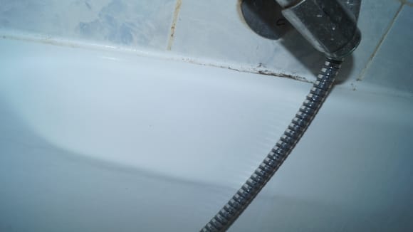 ZimmerSchimmel und verkrusteter Dreck an der Badewanne