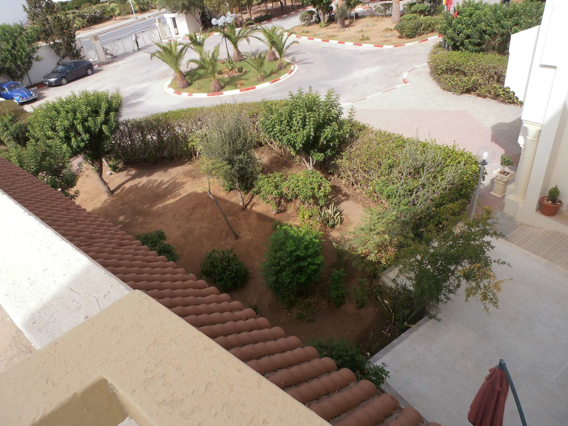 Ausblick auf die Straße und dem Eingang