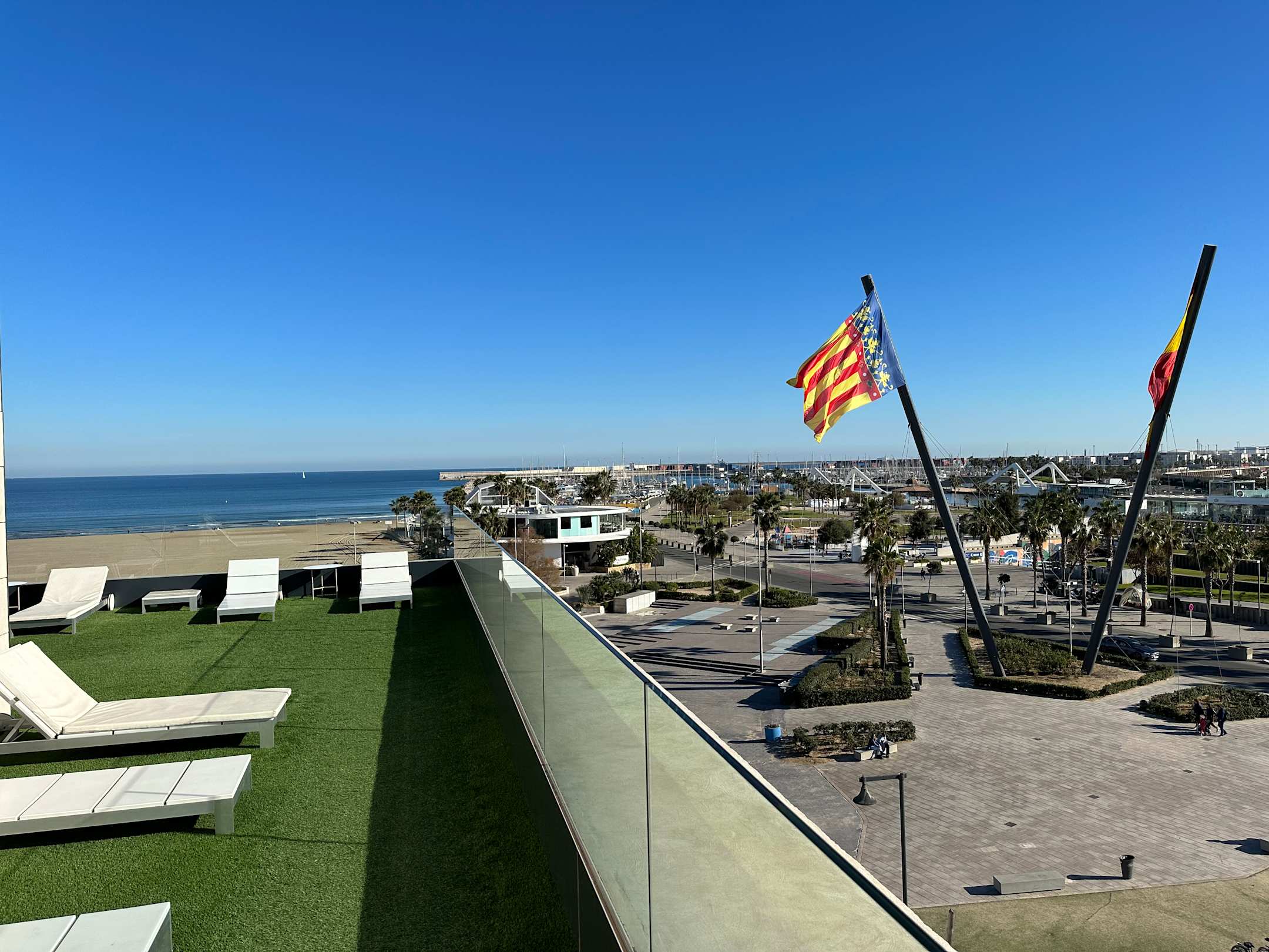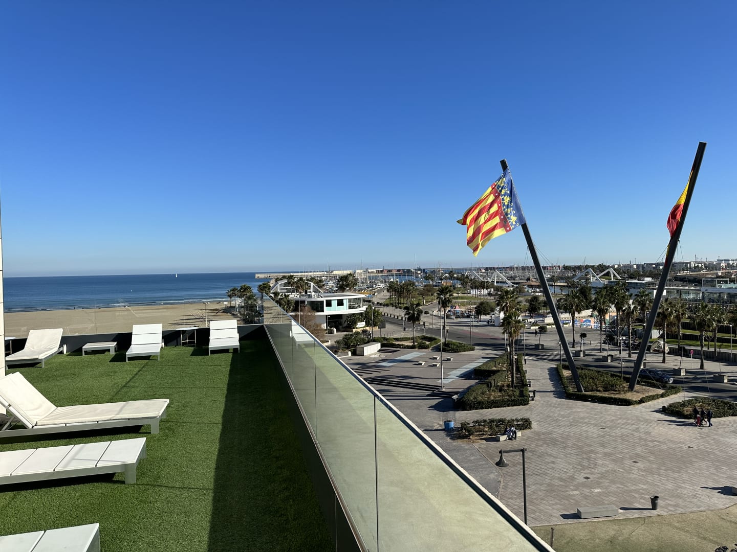 Außenterrasse mit Sonnenliegen - Ausblick ok - gut