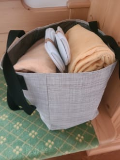 Tasche mit Bademantel, Schlappen und Handtücher. Ein Träumchen