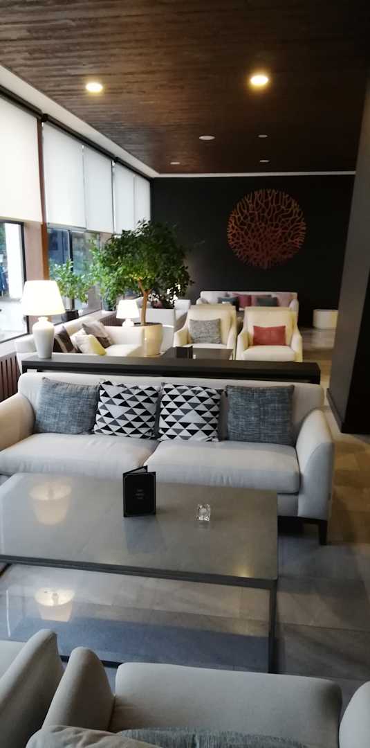die Lobby gegenüber der Rezeption, angenehm zu sitzen