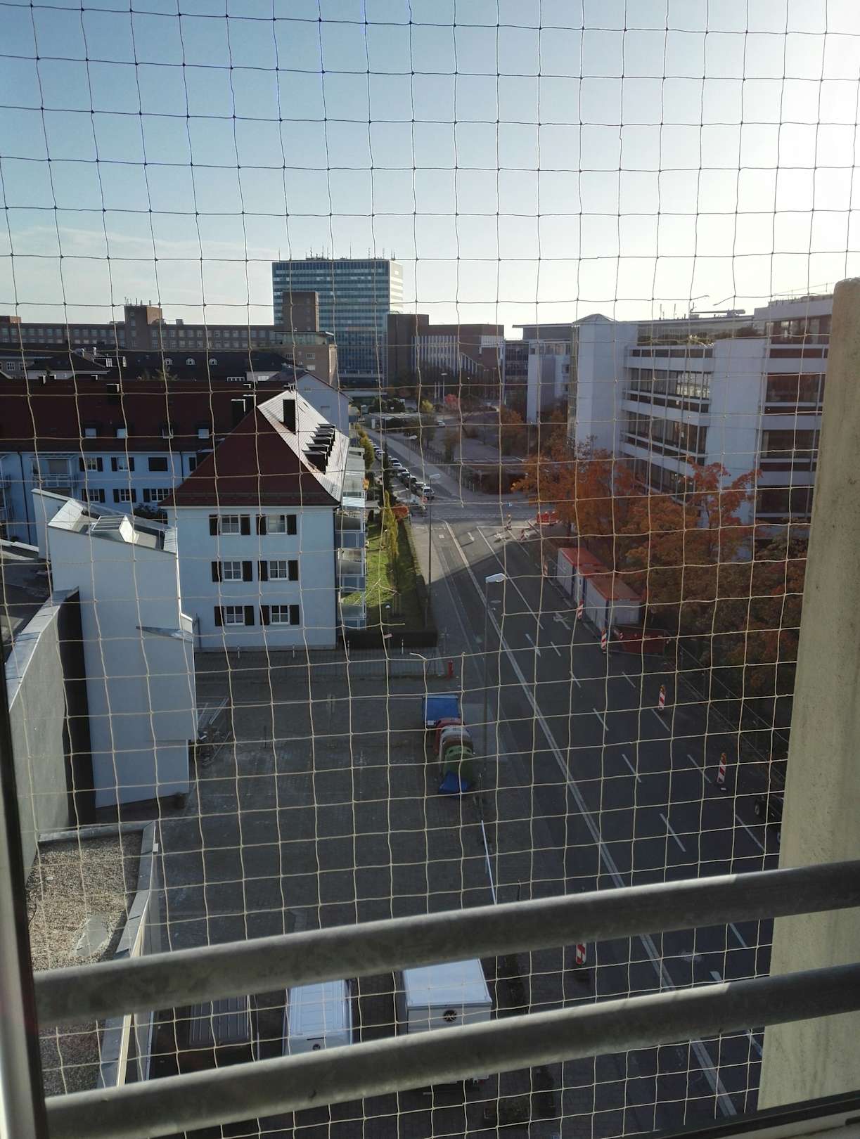 Zimmerblick 5 Etage, mit Baunetz vor dem Fenster