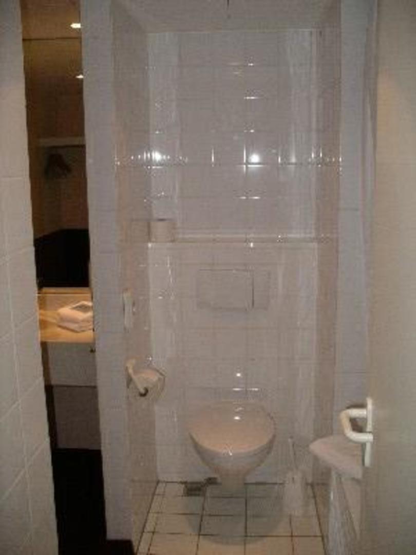 ToiletteBlick vom Wohnzimmer auf die Toilette, links geht es zum Waschbecken, rechts ist die Badewanne.