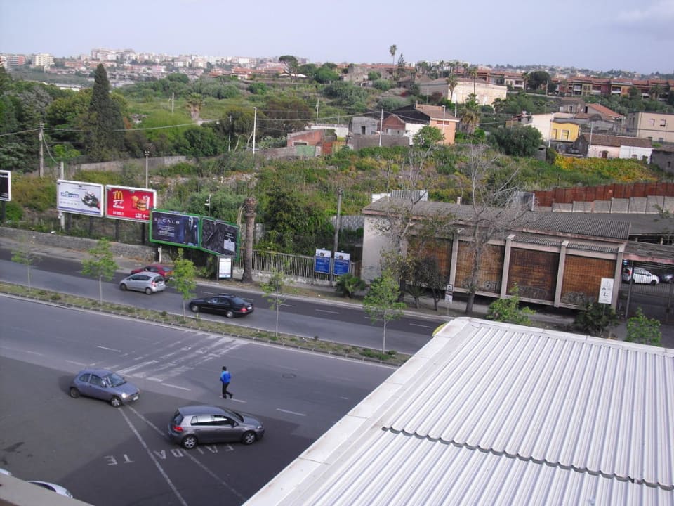 Aus dem Fenster auf die Hauptstrasse. Blick auf die Tankstelle.