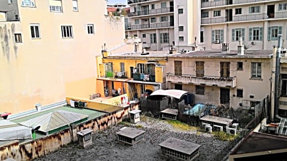 Blick aus dem Fenster: desolater Hinterhof
