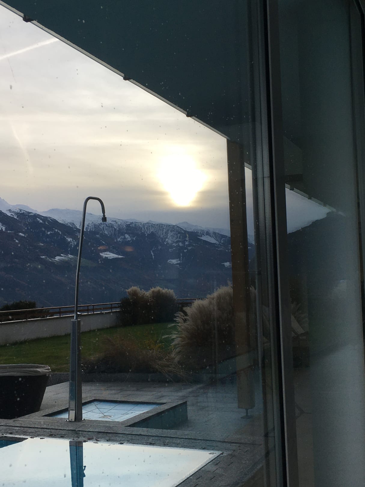 Blick aus dem Hallenbad - draussen vorwinterlich und drinnen kuschelig warm