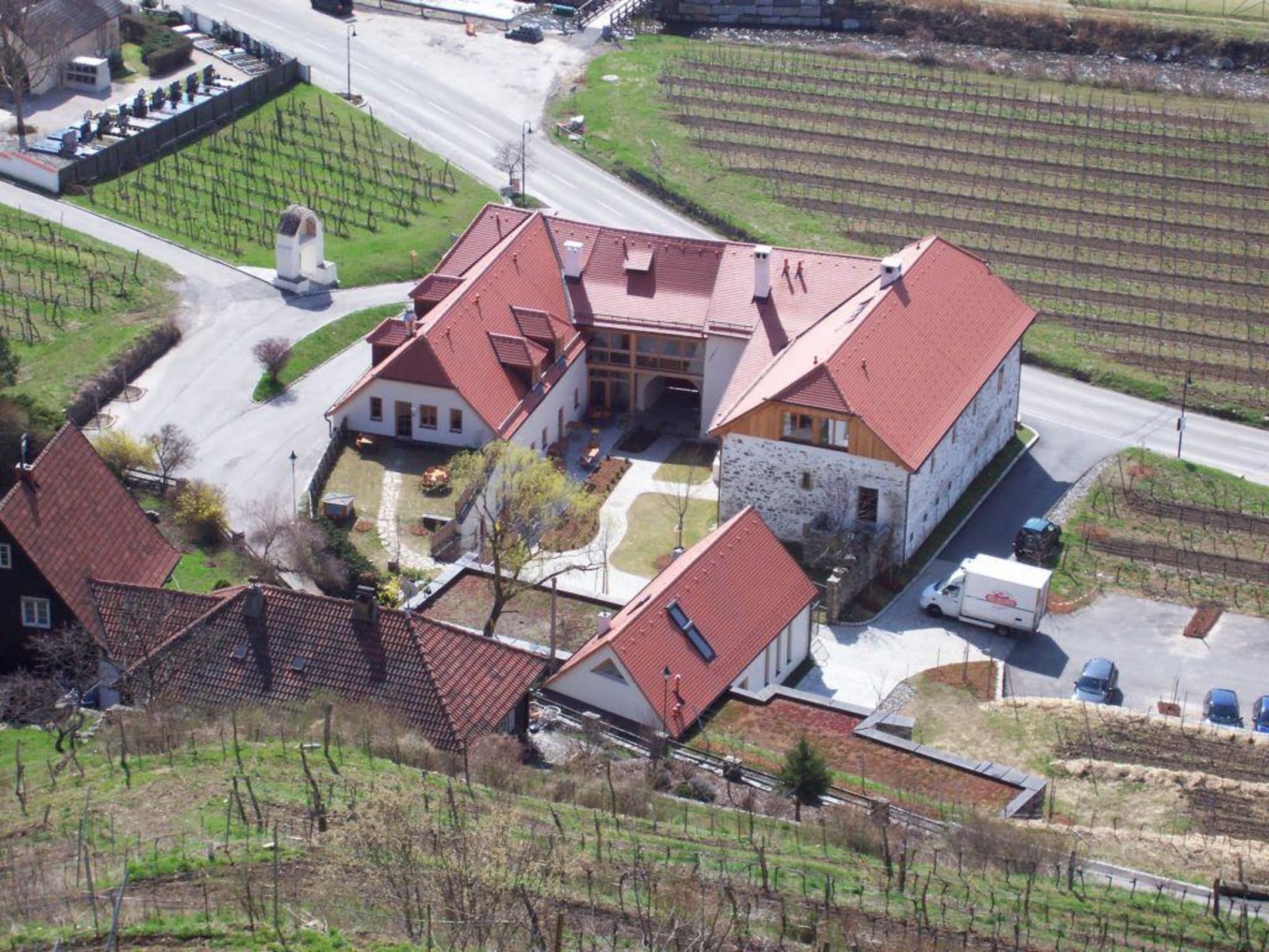 Das Weingut Nigl von der Ruine aus gesehen.