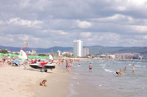 Am Strand Blick auf Hotel Burgas