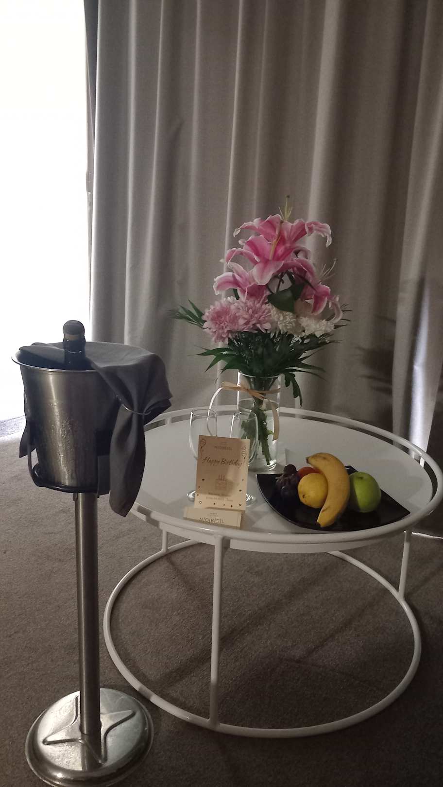 Zum Geburtstag wurde auf Wunsch Blumen und Sekt organisiert.