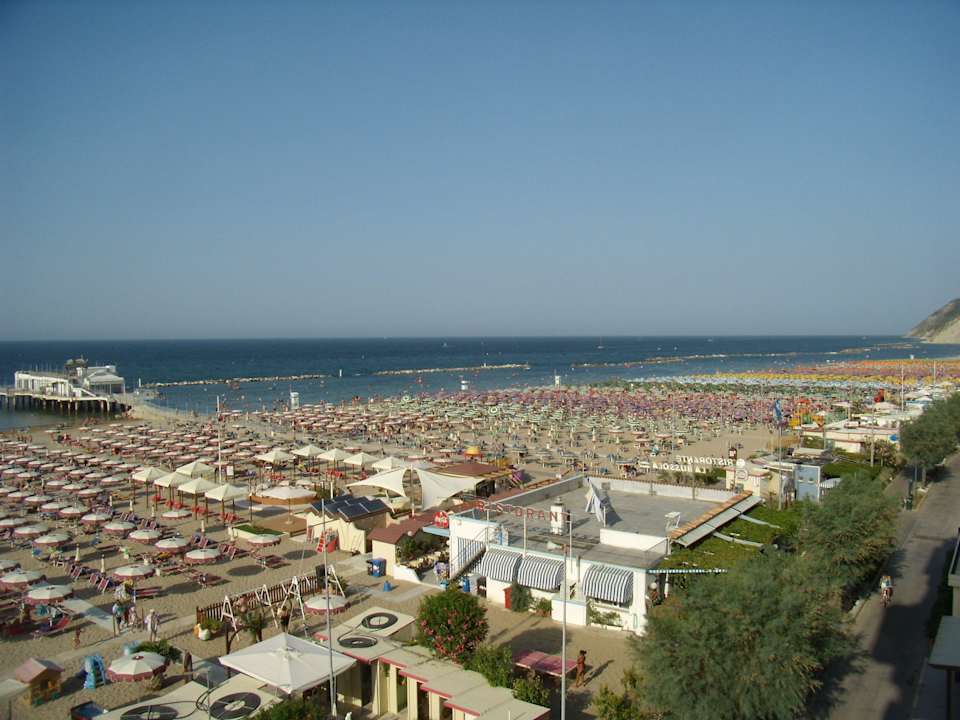 Blick vom Zimmer auf Hotelstrand