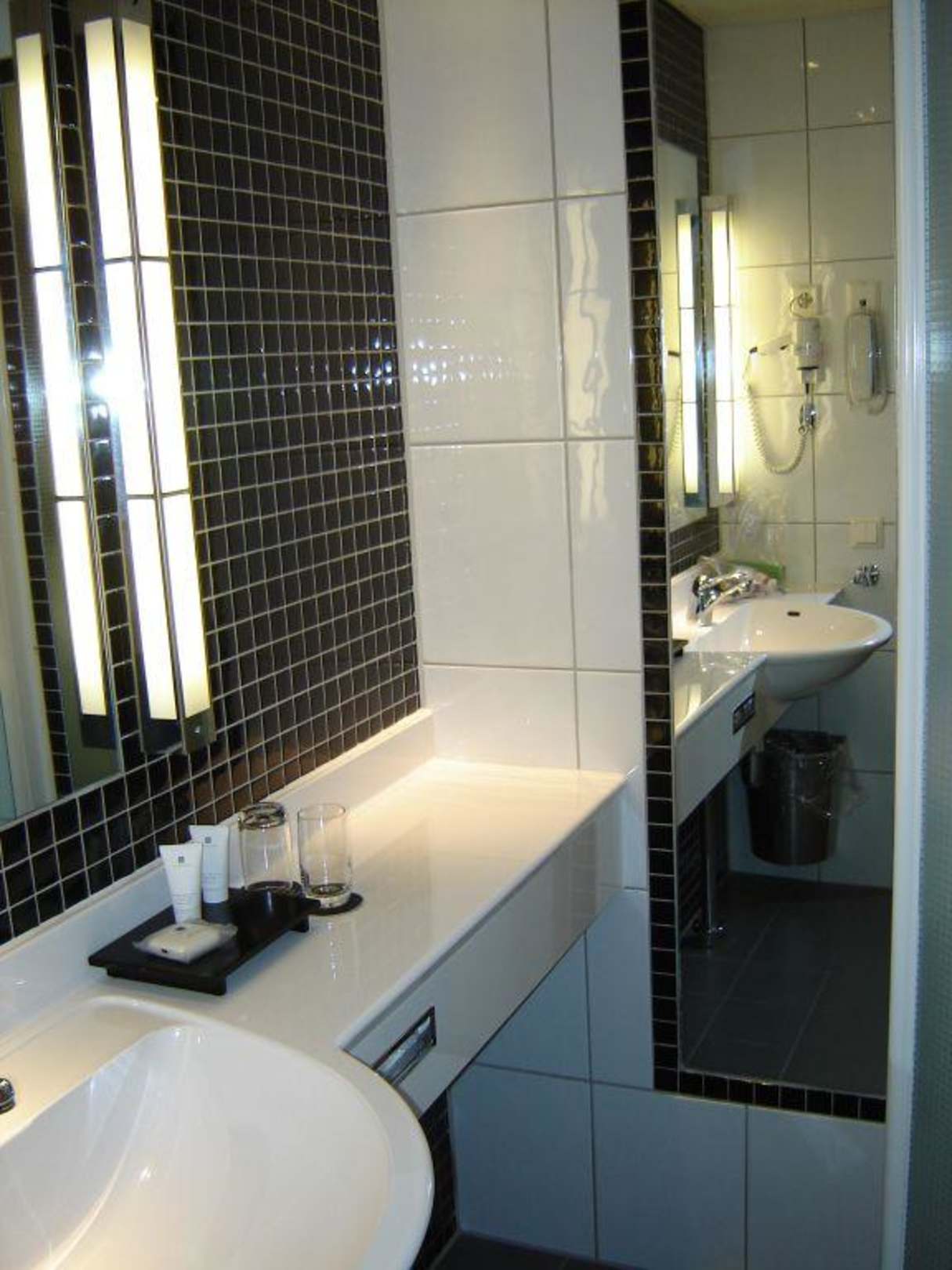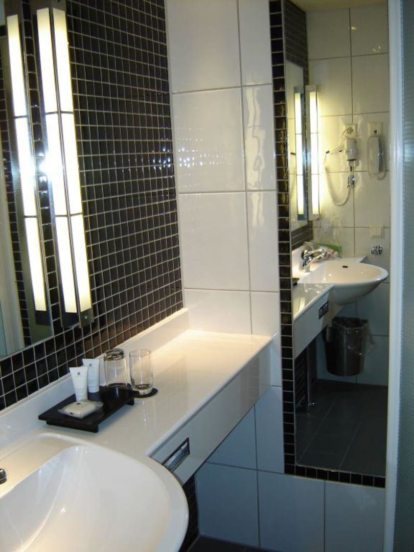 In Schwarz-Weiß gehalten, sehr hübsch, sieht edel aus. EZ haben Dusche.