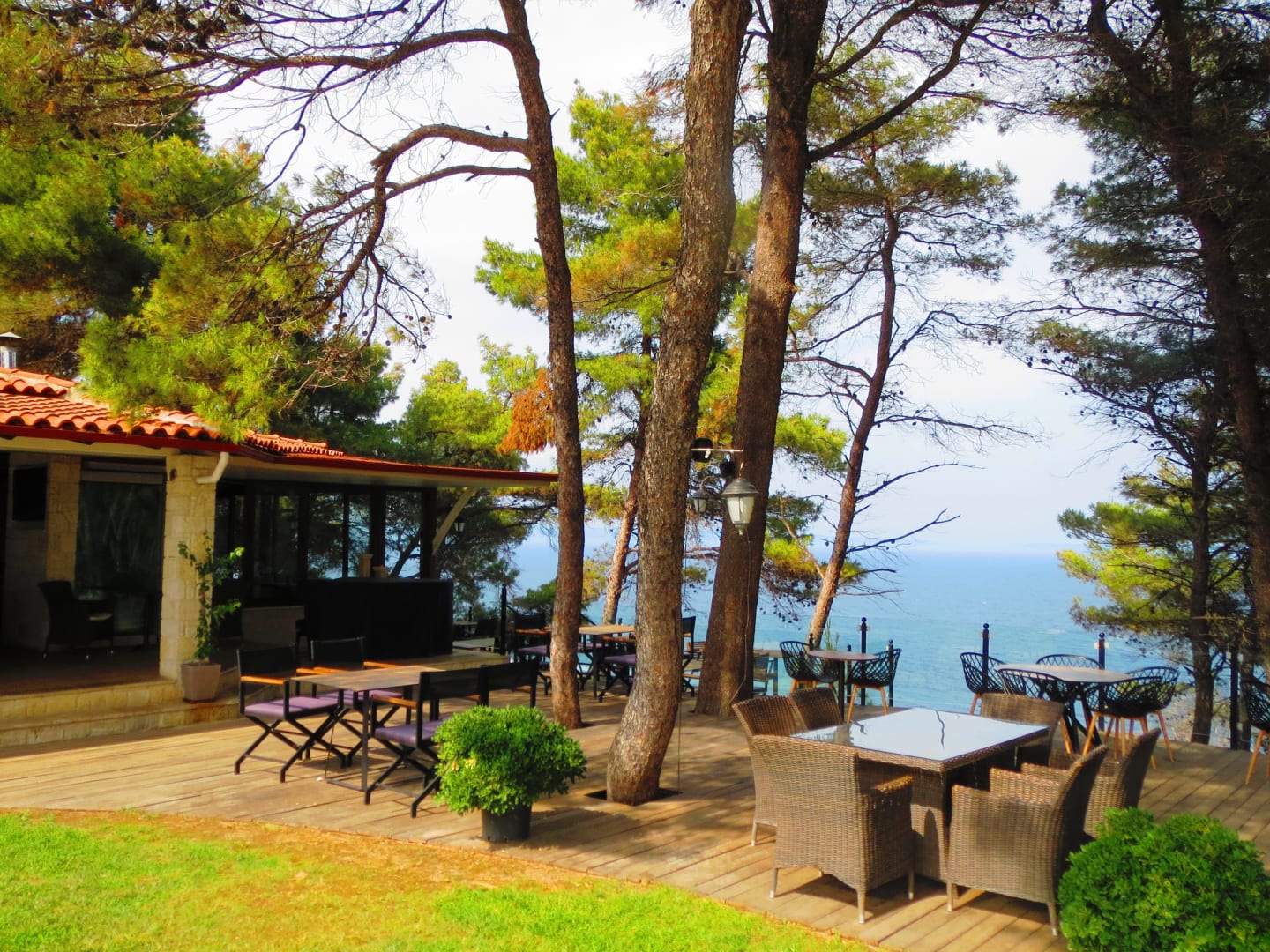 Bar/Restaurant mit einem Teil der Terasse. Hübsch!