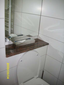witziges Detail im Bad- ein großer Spiegel über dem WC- Platz gut genutzt:o)
