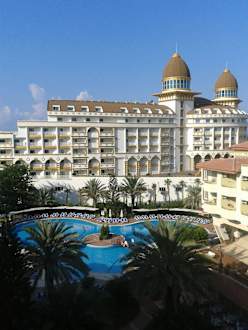 Blick zum Pool und Nachbarhotel