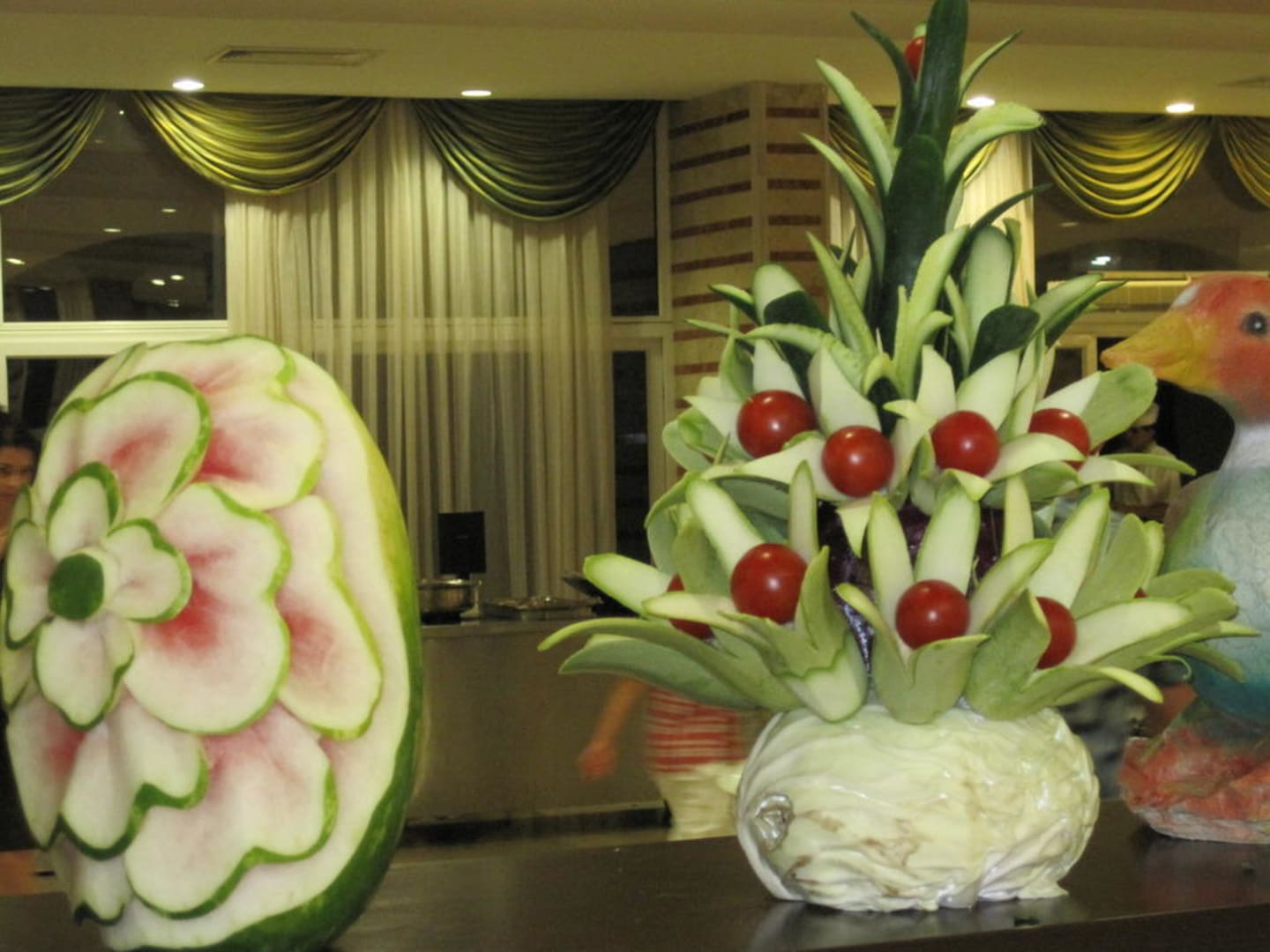 Geschnitzte Figuren am Galaabend
