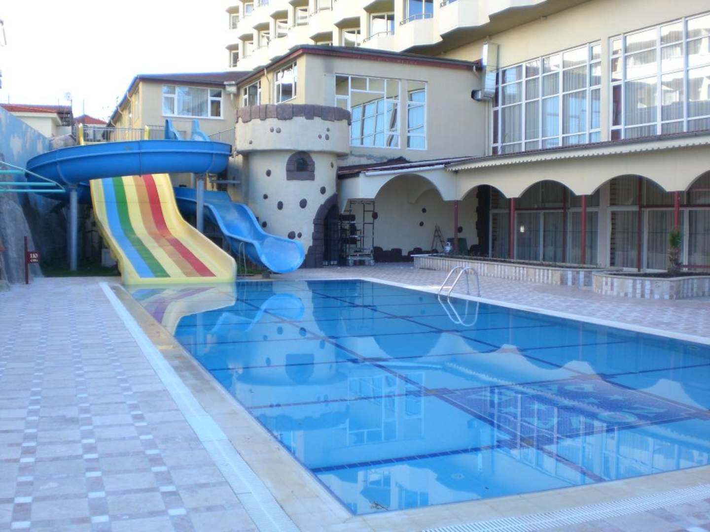 Extra Pool mit Rutschen abends