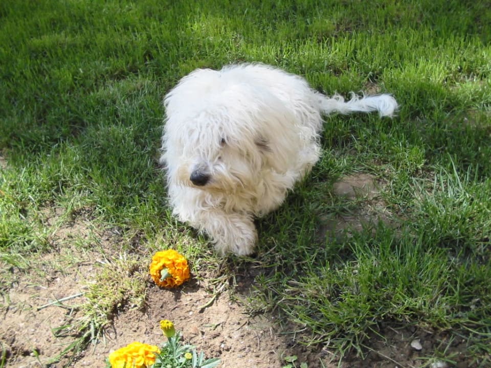 Strolchi am Morgen gepflegtDieser Hund gehört wohl zur Hotelleitung. Am Abend kam er immer auf die Terrasse, um dort auf einem bestimmten Polster zu schlafen. Niemand hat den Hund vertrieben oder geschimpft, das fanden wir super, da wir selber Hundebesitzer sind!