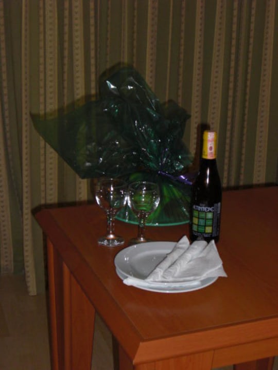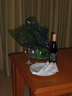 Obstkorb auf dem ZimmerKeline Geste zum Geburtstag eine Flasche Wein und ein Obstkorb auf dem Zimmer, vielen Dank