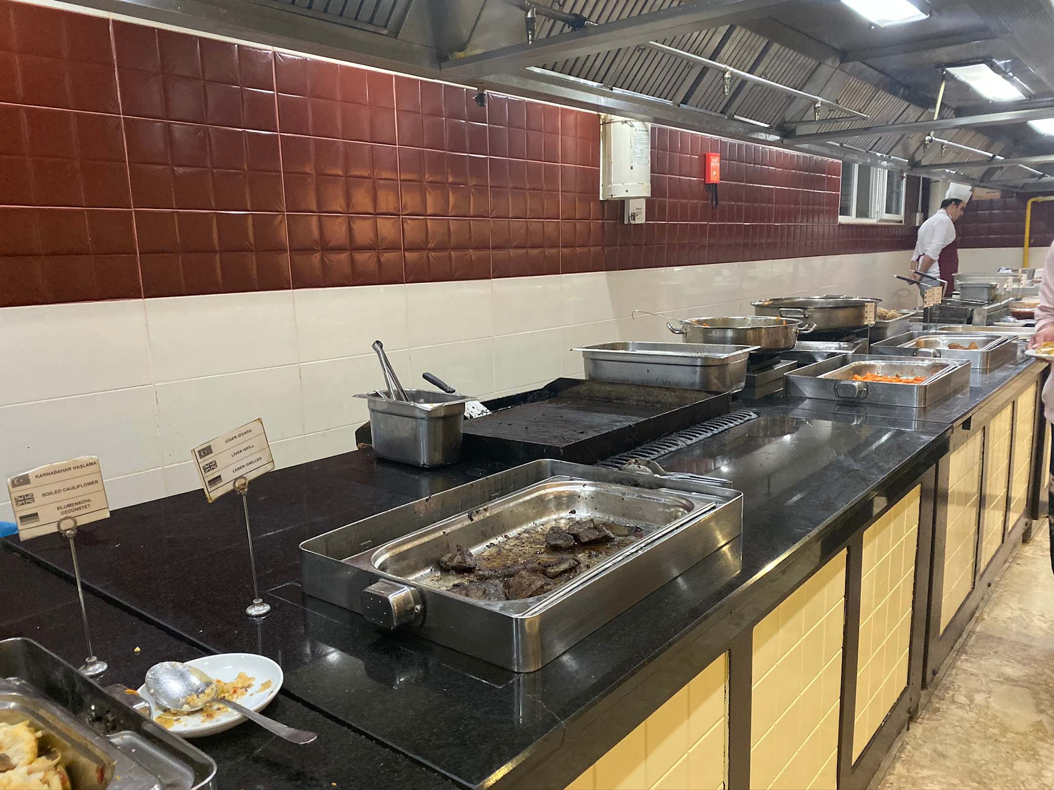 Kantinen würden so nicht anliefern dürfen, übrigens..... ein Badetuch lag auch hier wieder als Putzlappen vor dem Fisch Bräter um das Öl aufzufangen 🤨