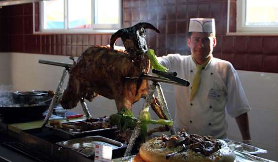 Hammel am Spieß gab es zum Galaabend (sehr lecker für dem der ein Freund davon war )