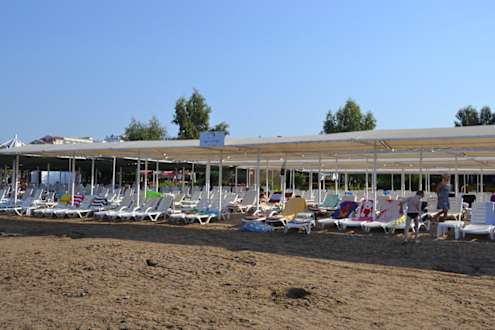 Keine Schirme sondern Dächer, ist echt klasse beim Sonnen, da muss man nicht dem Schatten hinterher rennen sondern die Liege nur vor oder zurück schieben, je nach Bedarf!