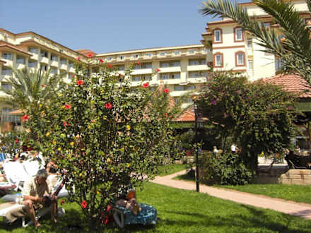 Garten mit Blick auf das Hotel Nova-Park in Side-Kumköy