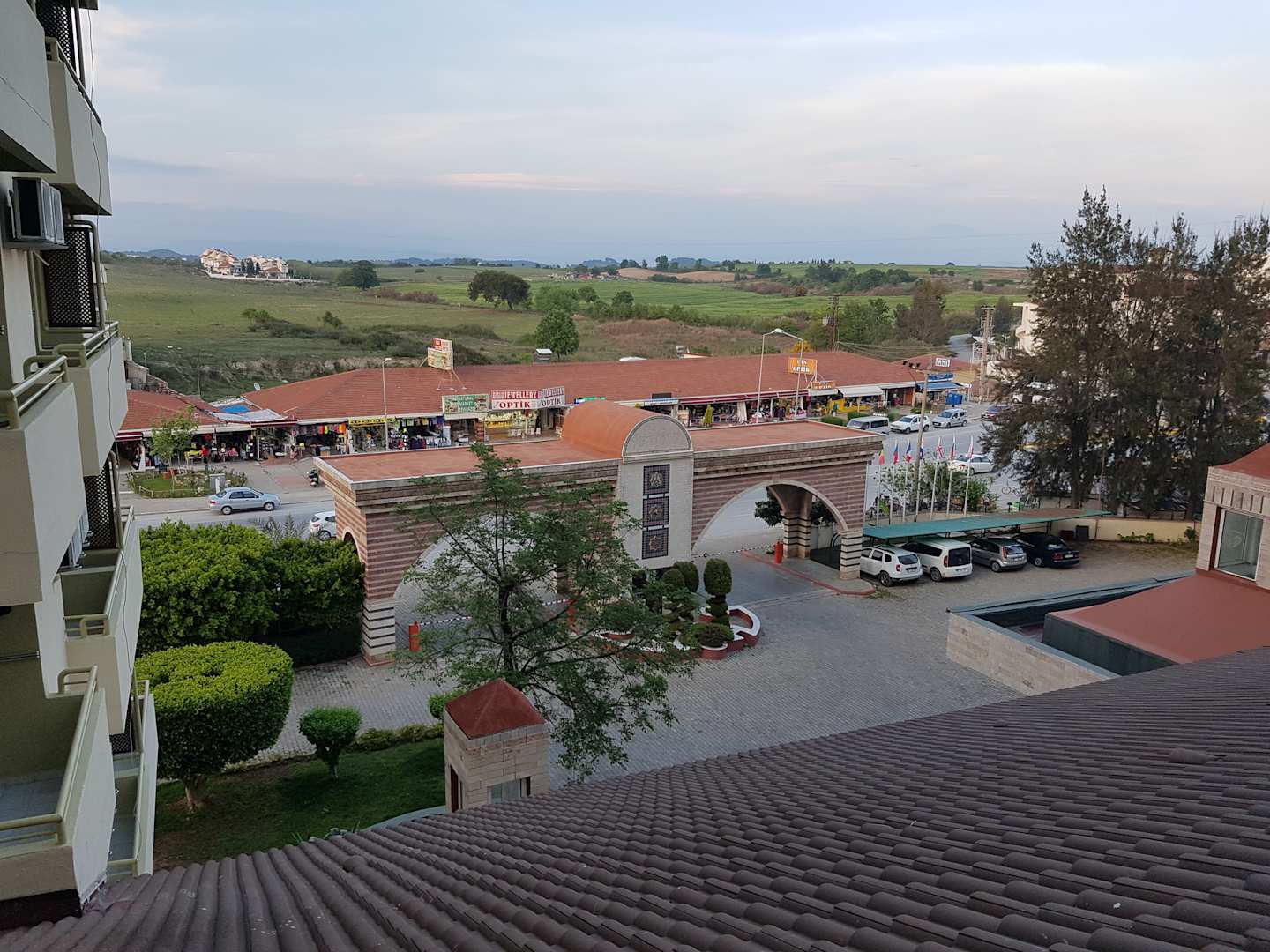 Blick auf den Einfahrtsbereich und die nahegelegenen Shops