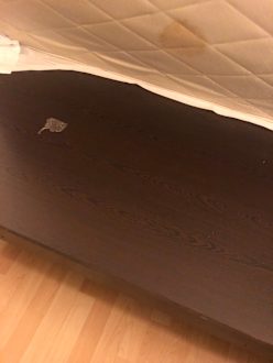 Die dreckige Matratze liegt auf nacktem Holz. Seit Tagen haben wir starke Rückenschmerzen.